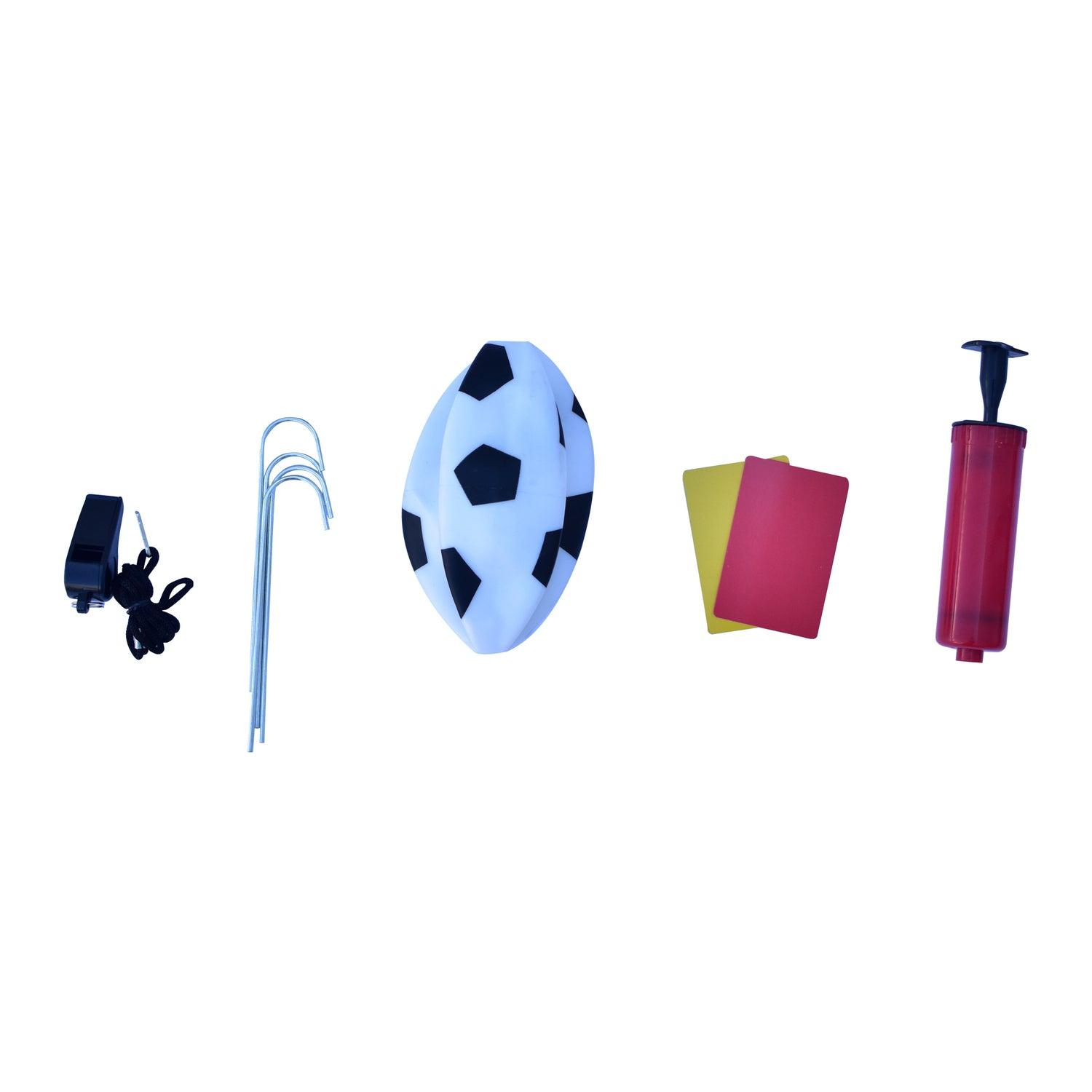 • Incluye: pelota, inflador, silbato, tarjetas, estacas