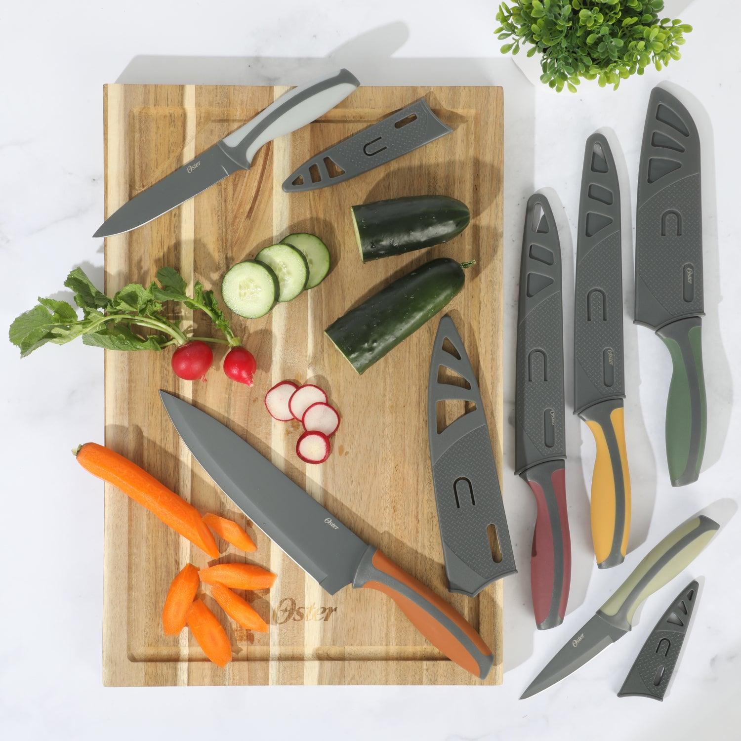 Oster Ronnan ofrece prácticos utensilios de cocina y aparatos para el uso diario. Ideal para afrontar cualquier tarea de corte durante preparación de alimentos. Desde cortar y cortar en cubos carne o cortar zanahorias hasta picar hierbas o ajo, preparar ingredientes para cualquier receta es muy fácil con este duradero cuchillo de acero inoxidable. La hoja de acero inoxidable con alto contenido de carbono resiste el óxido y la corrosión, al tiempo que proporciona nitidez y precisión para Rebane los alimentos fácilmente.