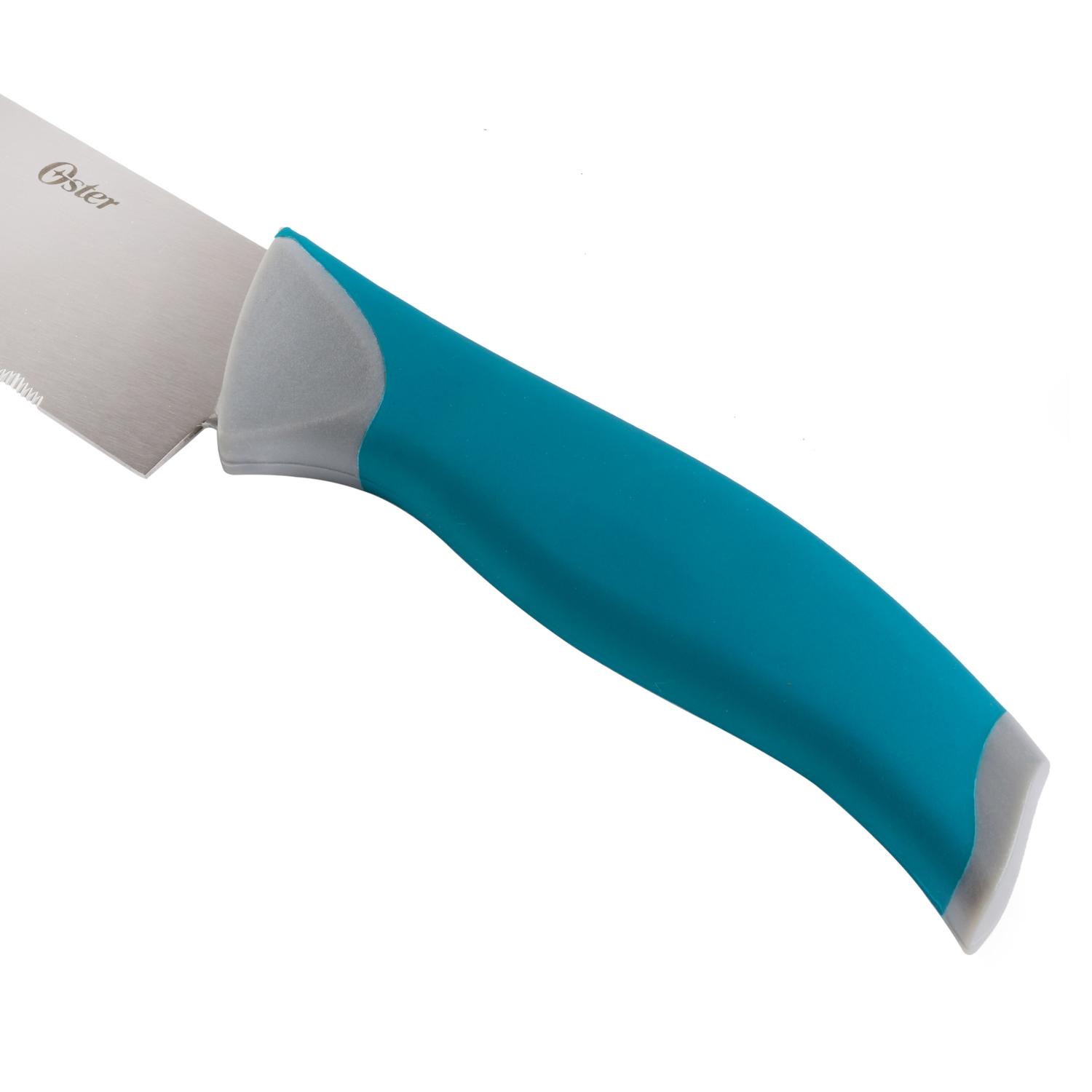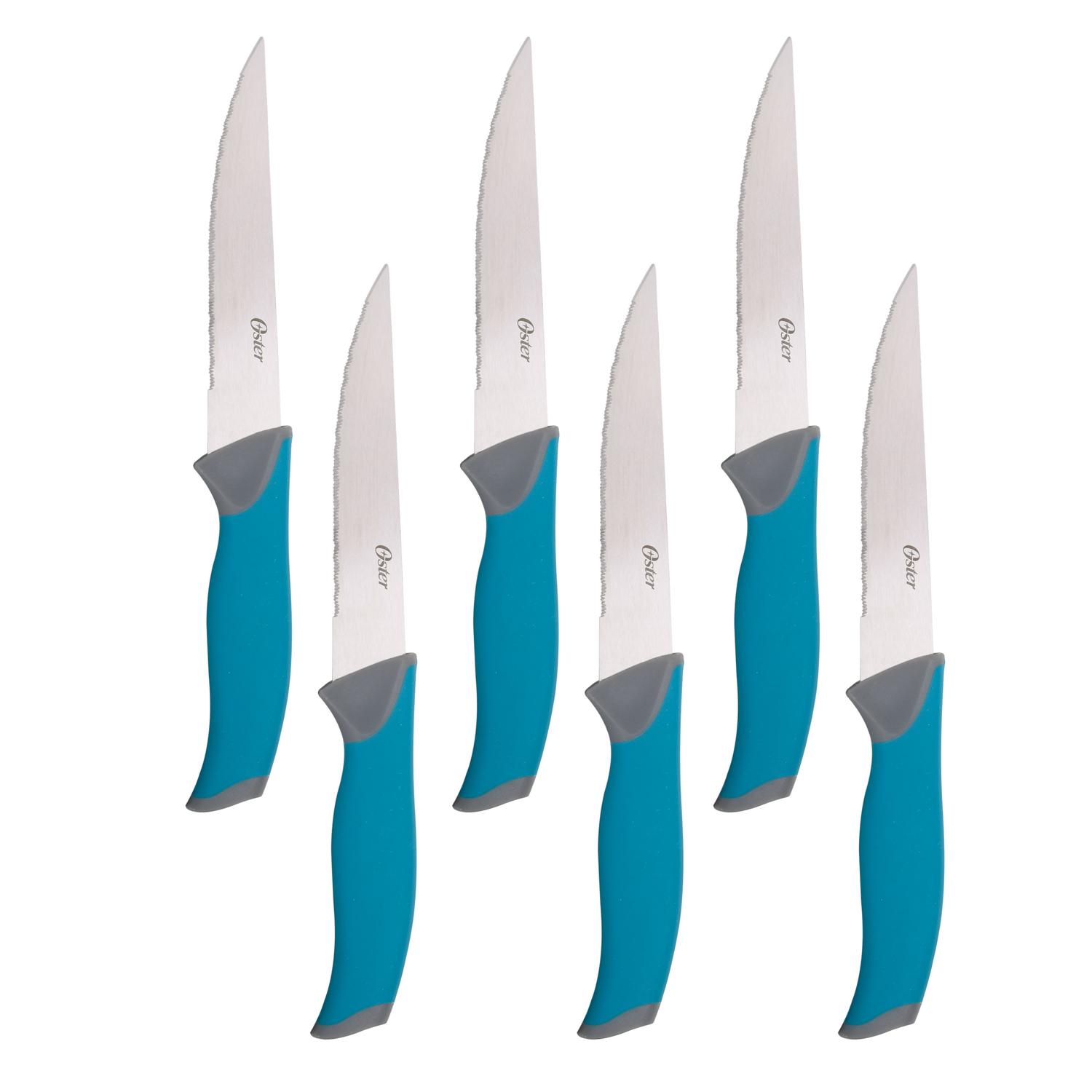 Juego de Cuchillos Azul Oster con Bloque de Madera Negro 14 Piezas