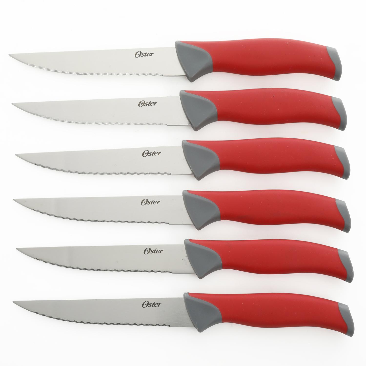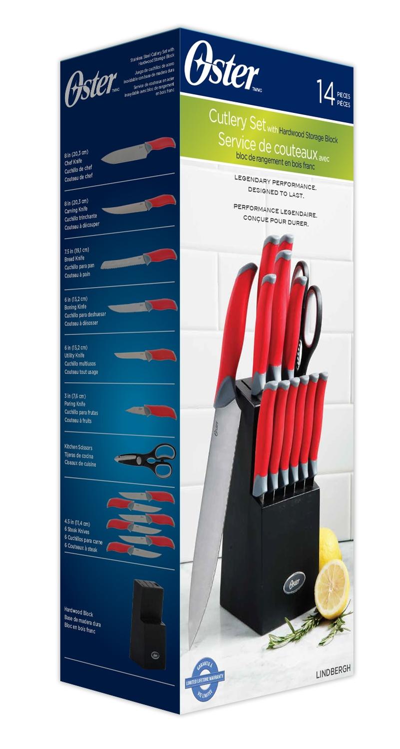 Juego de Cuchillos Rojo Oster con Bloque de Madera Negro 14 Piezas
