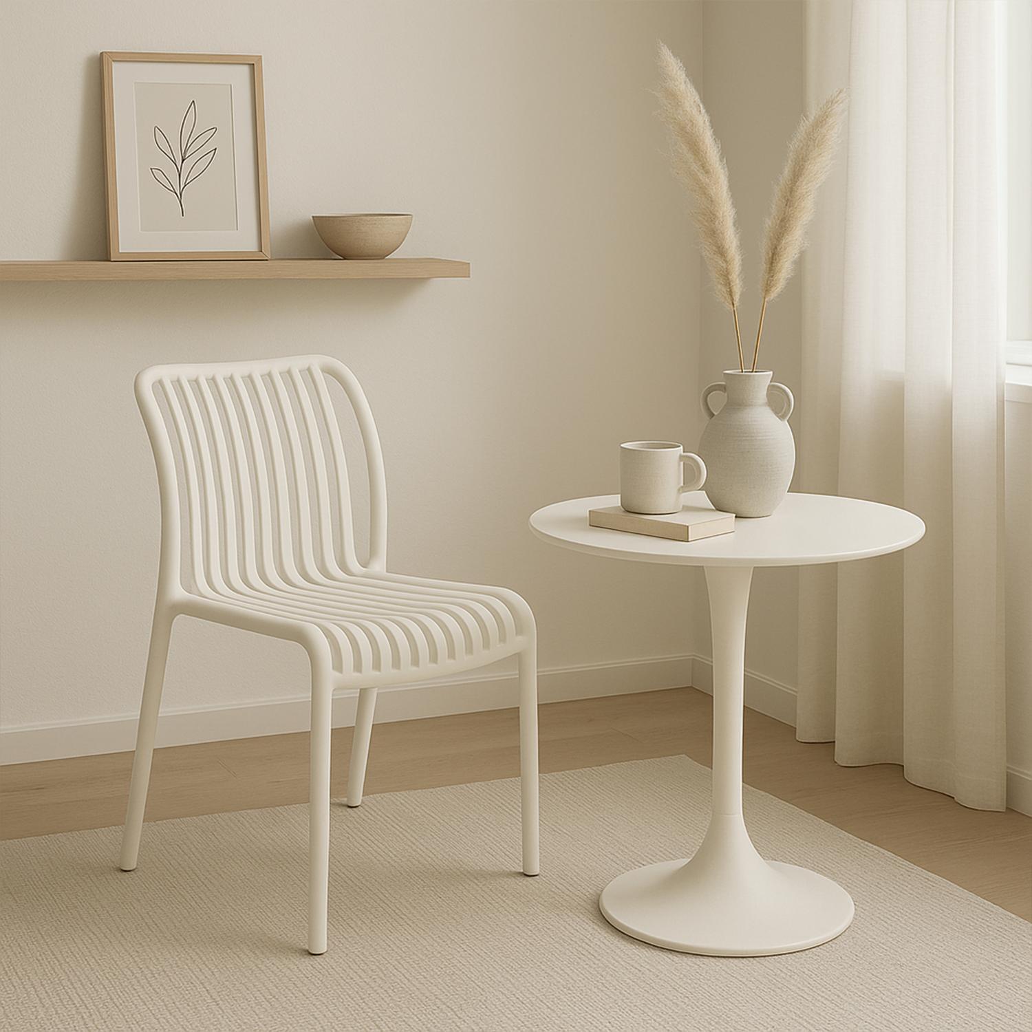 Combinan lo mejor del diseño moderno con una estética nórdica, minimalista y vanguardista. Además de ser una solución práctica, también se integran como un elemento decorativo que realza cualquier espacio. Su estructura es liviana pero firme, lo que permite moverlas fácilmente entre ambientes y aprovechar al máximo cada rincón. Son apilables, lo que facilita su almacenamiento y las convierte en una opción versátil para el uso diario.