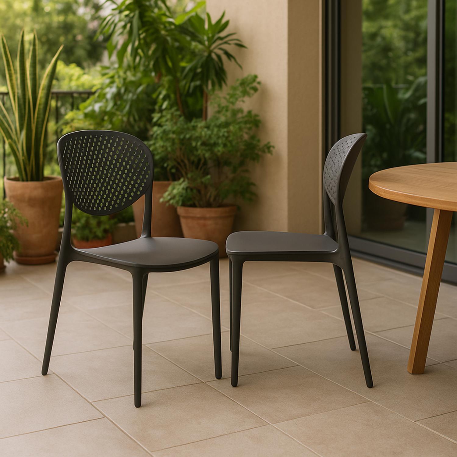 Las sillas Apilable Deco Hamburg Negra Escandinavia están fabricadas en plástico de alta resistencia, resina o polipropileno, materiales duraderos que se adaptan perfectamente tanto al interior como al exterior del hogar. Son ideales para tu terraza, comedor, living, dormitorio, sala de estar e incluso para espacios de trabajo como la oficina, aportando estilo y confort en cualquier ambiente.