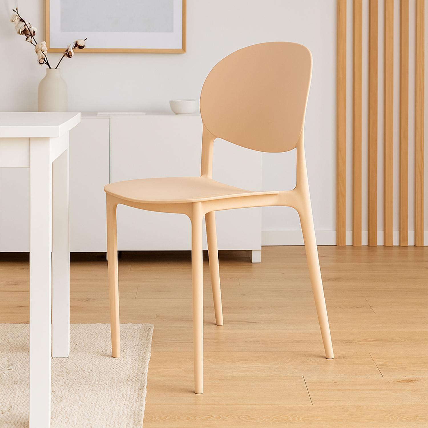 Las sillas Apilable Deco Sevilla Beige Escandinavia están fabricadas en plástico de alta resistencia, resina o polipropileno, materiales duraderos que se adaptan perfectamente tanto al interior como al exterior del hogar. Son ideales para tu terraza, comedor, living, dormitorio, sala de estar e incluso para espacios de trabajo como la oficina, aportando estilo y confort en cualquier ambiente.