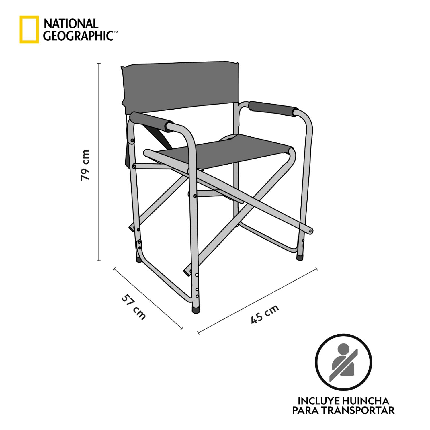 La Silla Plegable Camping Director Boston de National Geographic es ideal para disfrutar de la naturaleza con comodidad y estabilidad. Fabricada con un resistente tubo de acero, ofrece una estructura robusta y duradera. Su diseño tipo director es práctico y fácil de plegar, lo que permite transportarla y almacenarla con comodidad. Perfecta para camping, actividades al aire libre o cualquier aventura.