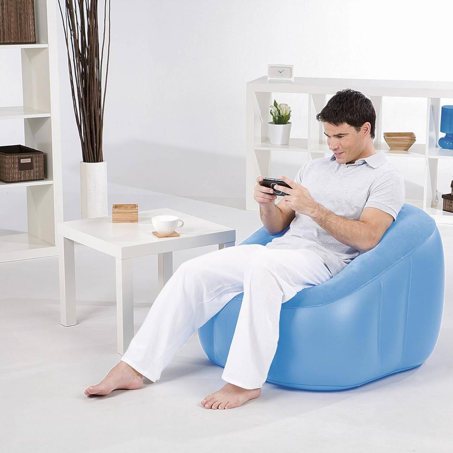 Este sillón inflable Comfi Cube de Bestway® es fácil de instalar, requiere un almacenamiento mínimo y, sobre todo, ¡es DIVERTIDO! Con una construcción robusta con vigas en I y una cómoda superficie para sentarse, este sillón es perfecto para cuando los invitados se acercan, para llenar una habitación vacía, para ver el gran partido o como muebles de dormitorio. Disponible en 3 colores, el Comfi-Cube es adecuado para uso en interiores y exteriores.