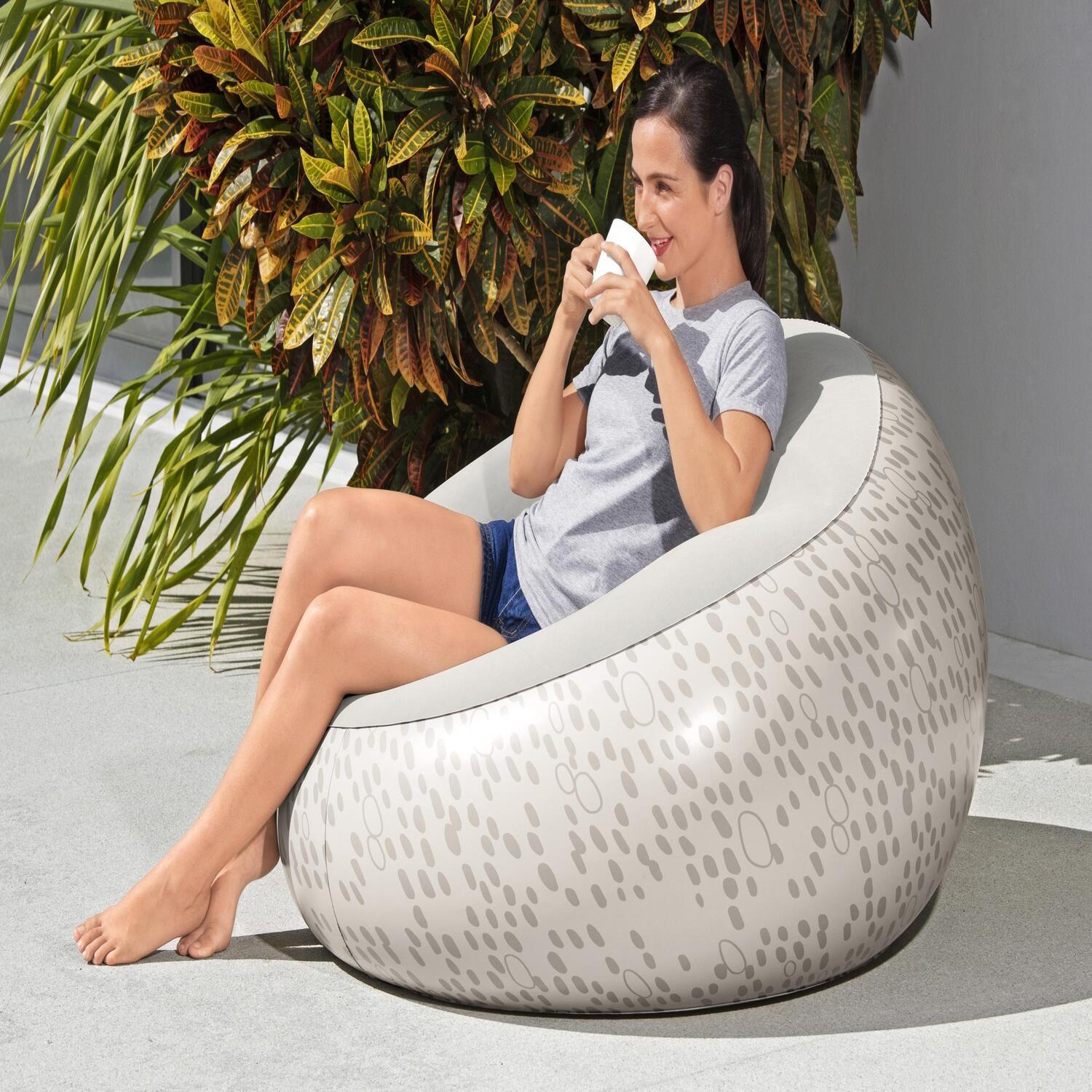 El asiento inflable de Bestway® es fácil de montar, de guardar y, sobre todo… ¡Es superdivertido! Con una estructura de haz de bobina resistente y un asiento muy cómodo, esta silla es perfecta para cuando tienes invitados, para llenar un espacio vacío, para ver cómodamente tu serie favorita o como mobiliario de una habitación. Disponible en 3 colores diferentes, este asiento inflable cuenta con 2 cámaras de aire para una mayor estabilidad. Ideal para su uso en interiores y en exteriores.
