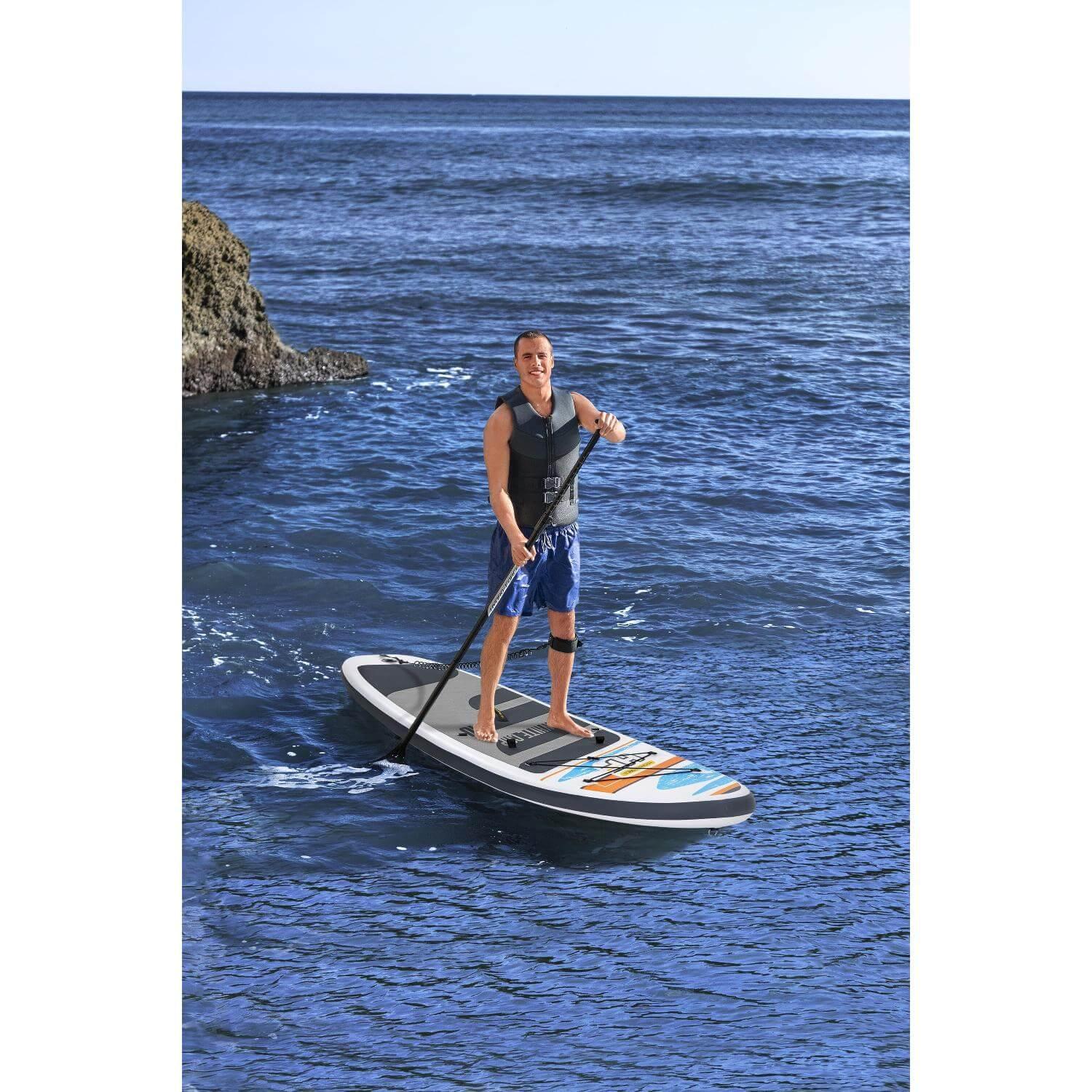 Deportes y diversión en el agua: tabla de Paddle Inflable Hydro-Force SUP Bestway.Ya sea que esté de vacaciones o en un viaje a aguas domésticas: la tabla de remo vertical Hydro-Force SUP White Cap Stand-up de Bestway es el compañero ideal en verano. Gracias a la bomba manual de alta presión HYDRO-FORCE SUP incluida y la paleta de aluminio ajustable, la tabla es fácil y está lista para usar en el menor tiempo posible.