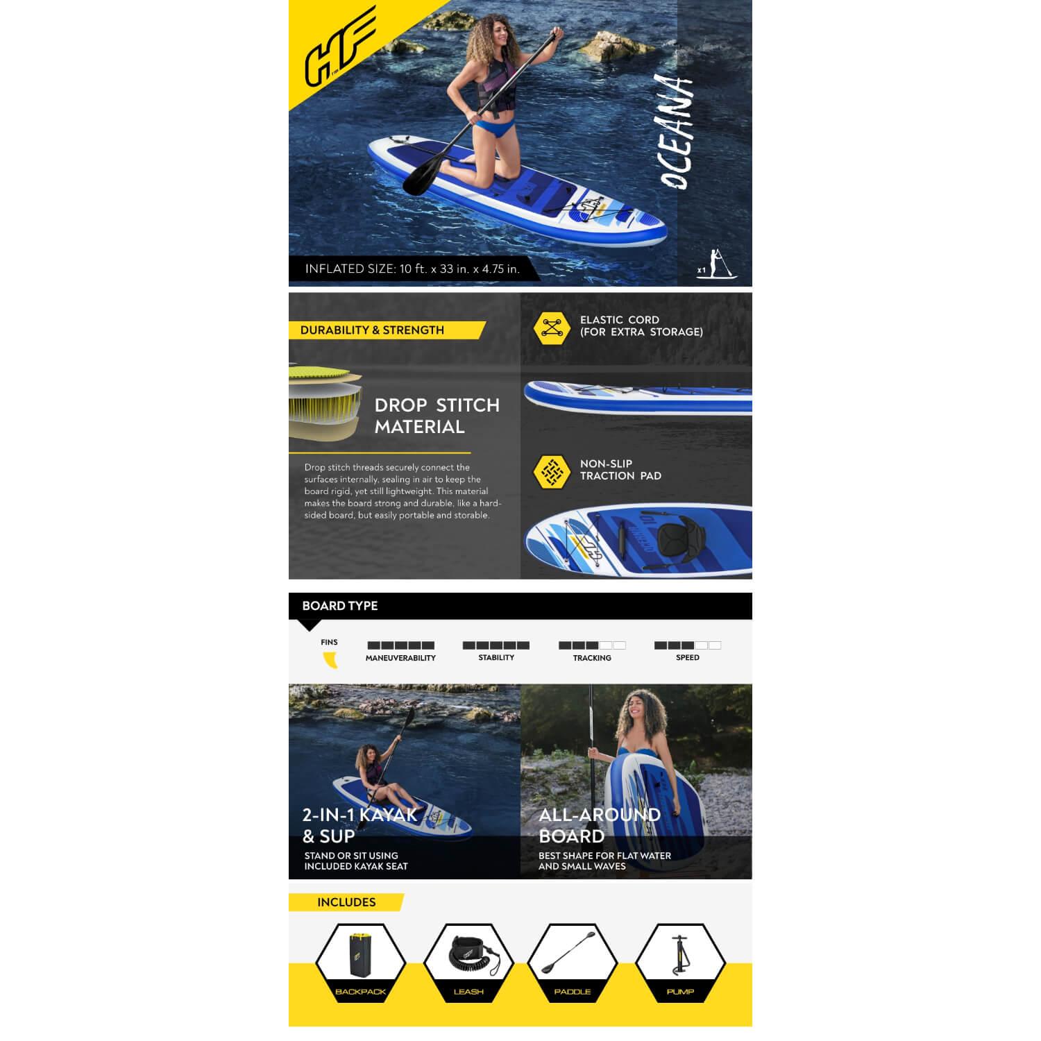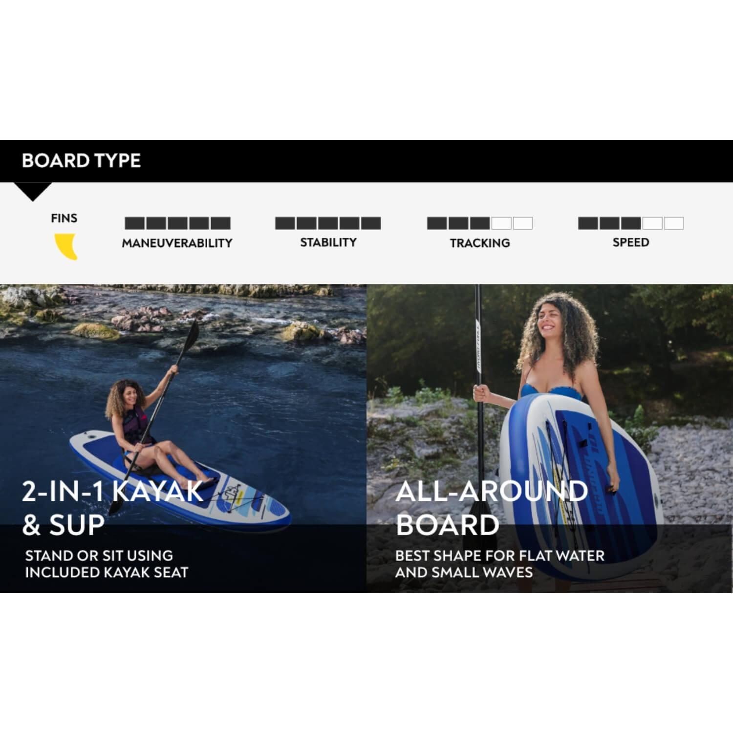 Salga y experimente su próxima aventura en el agua con el juego de tabla de remo convertible Hydro-Force ™ Oceana. Esta tabla está categorizada como una tabla versátil, lo que significa que tiene la forma perfecta para una conducción segura y multifuncional, y se puede convertir fácilmente en un kayak con el asiento y el reposapiés incluidos.
