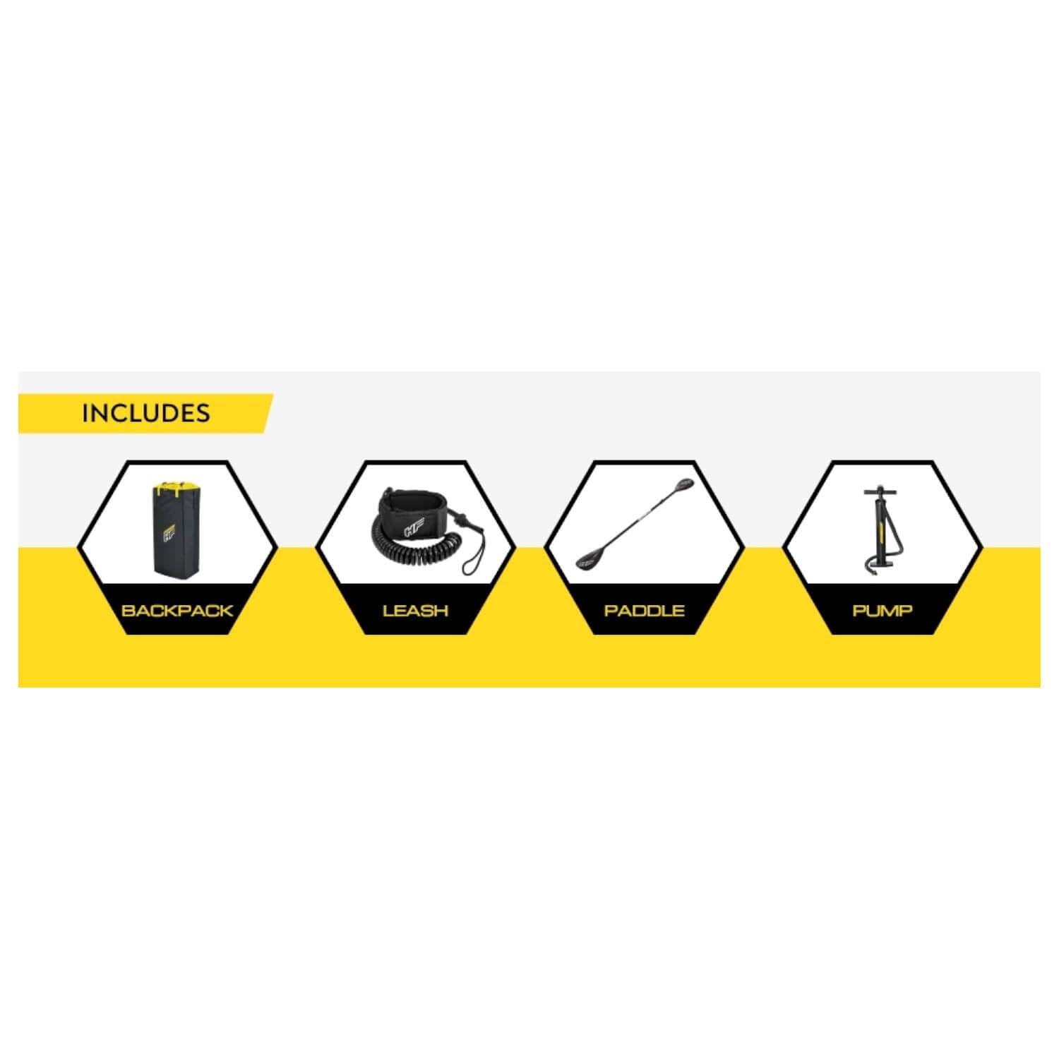 • Contenido: 1 tabla de remo, 1 remo, 1 bomba de mano, 1 mochila, 1 correa enrollada, 1 aleta central, kit de reparación