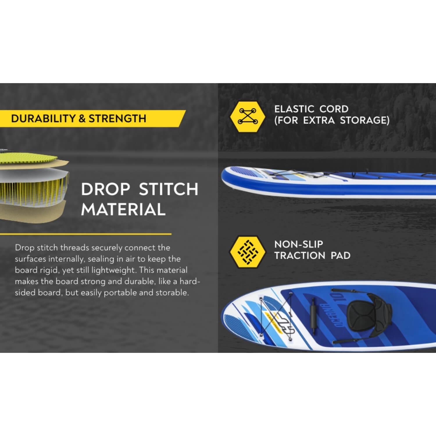 • El material Drop Stitch es portátil y fácil de almacenar, con la resistencia de una tabla de lados duros.
