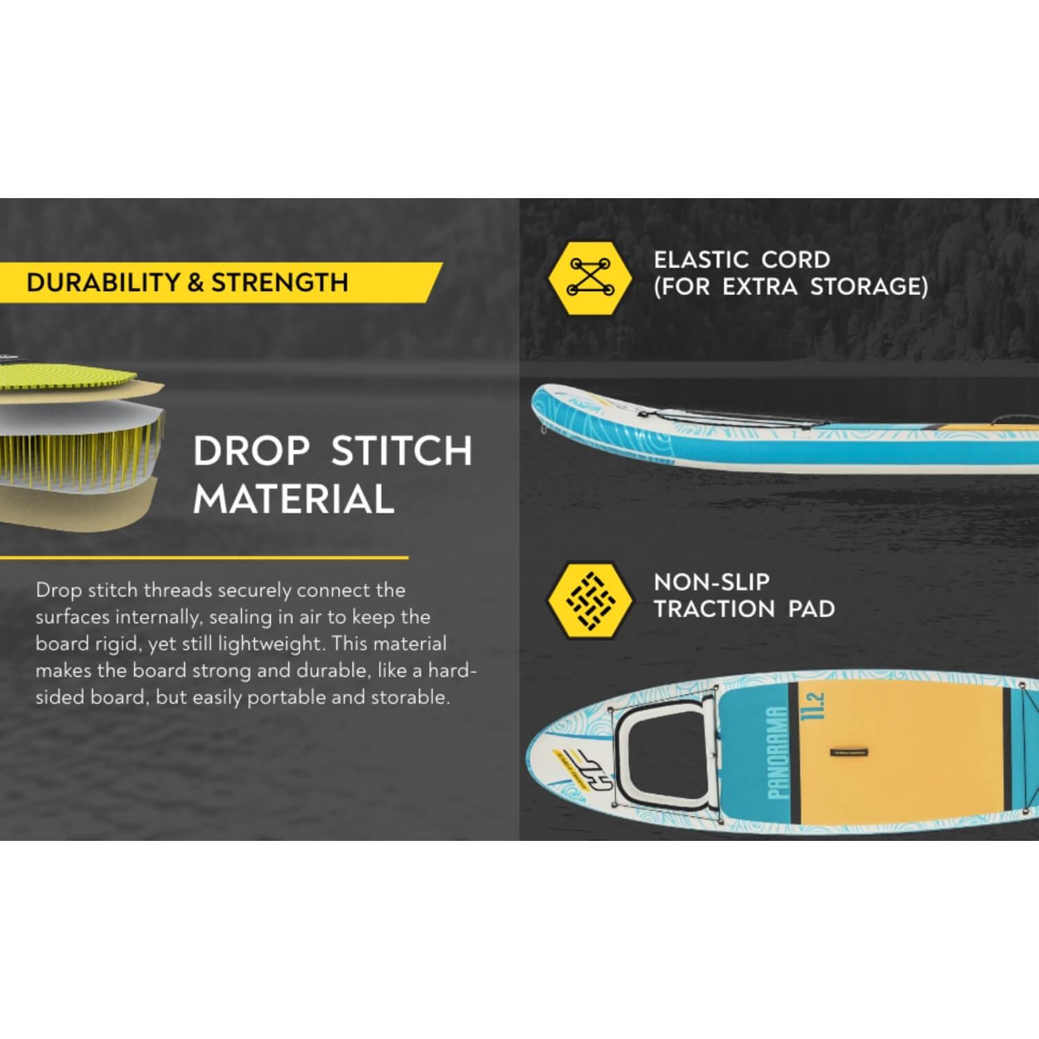 Material El material drop point brinda los beneficios de almacenamiento y portabilidad de un producto inflable con la resistencia y durabilidad de una tabla rígida