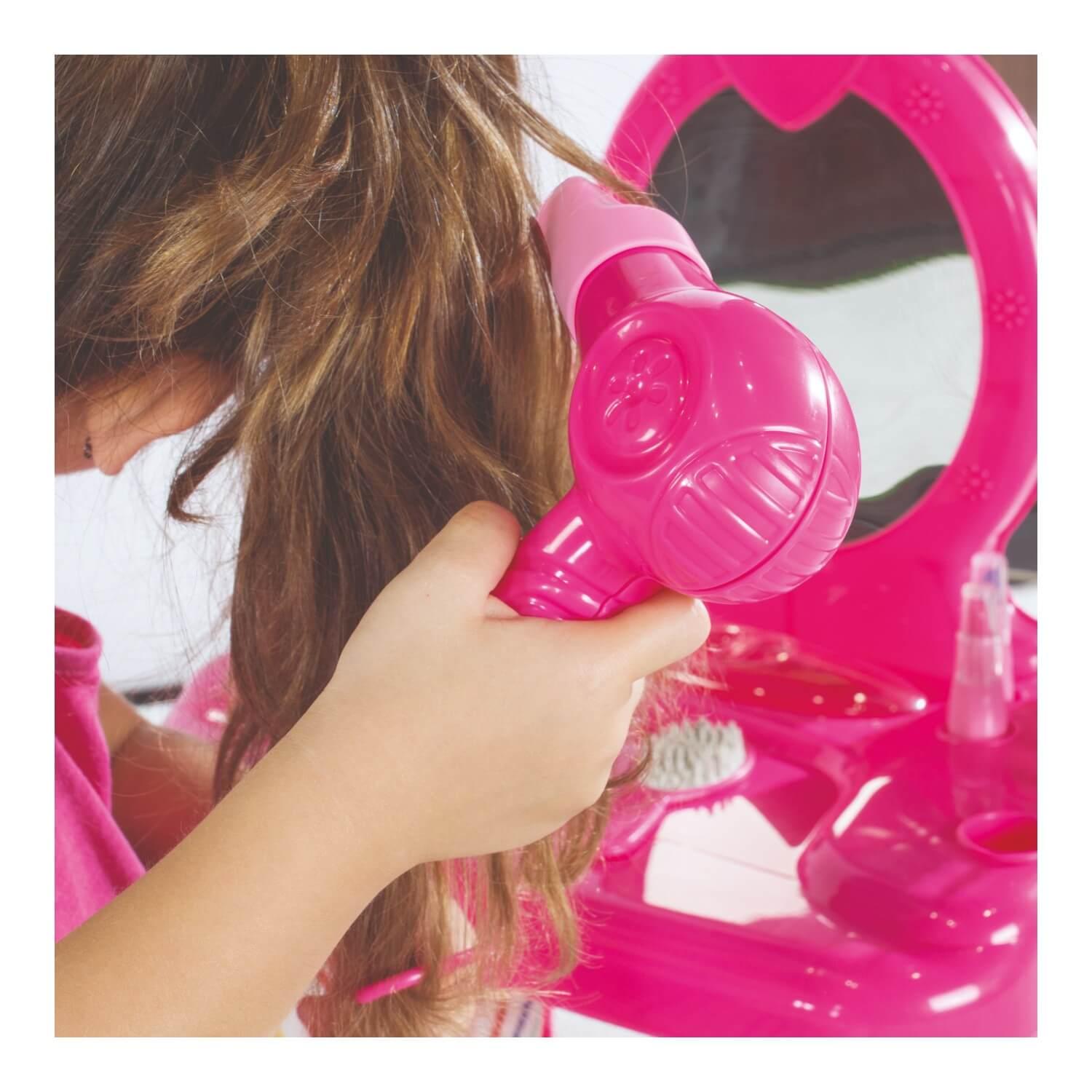 • Incluye: 1 Espejo, 2 perfumes, 2 labiales, 2 cepillos de rubor, 2 hebillas, 1 sombra de ojos, 1 cepillo, 1 peine, 1 secador de pelo.