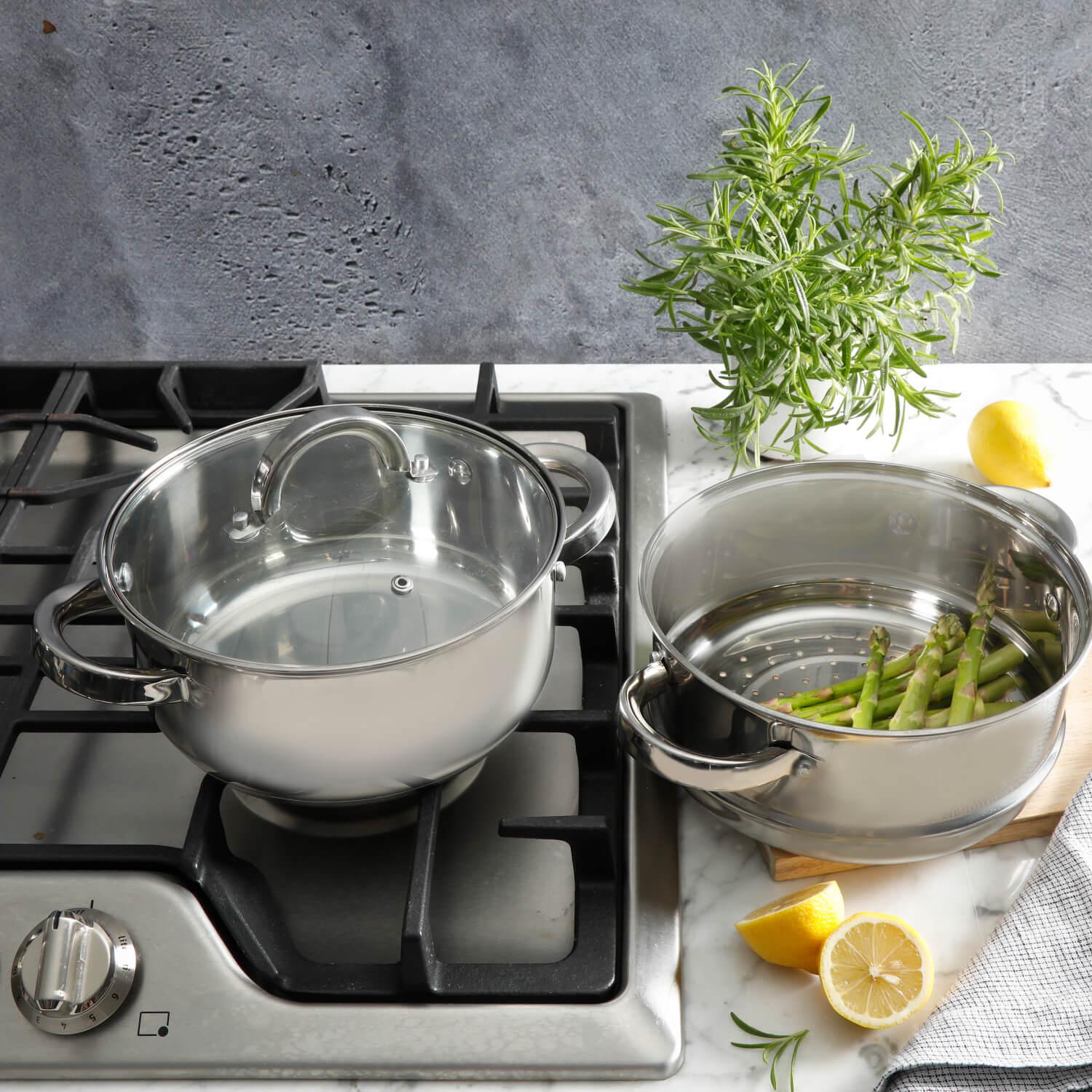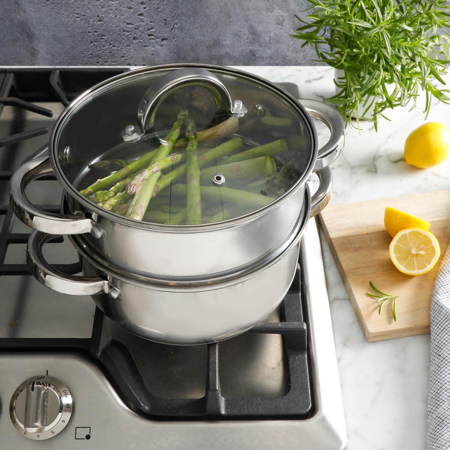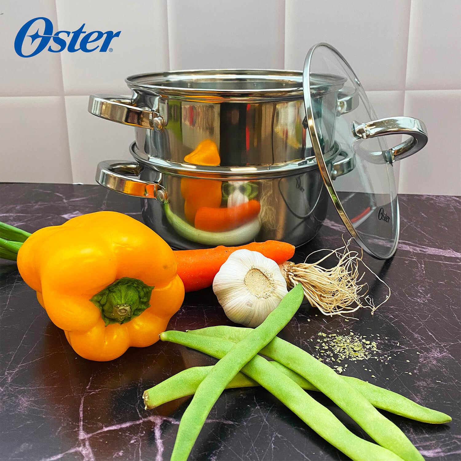 El set de vaporeras Sangerfield de Oster es una excelente opción para cocinar alimentos al vapor. Está compuesto por 2 vaporeras apilables que se ajustan una encima de otra para crear un sistema de cocción al vapor en varias capas. Este set no puede faltar en tu cacina pues es muy versátil y se puede utilizar para cocinar una variedad de alimentos, como verduras, pescado, carne, arroz y dumplings. Al cocinar los alimentos al vapor, se conservan mejor los nutrientes y el sabor natural de los ingredientes, lo que los hace más saludables y sabrosos.